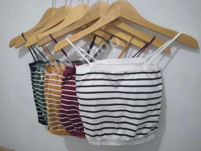 Tank Top Crop Motif Garis/Salur Tali Kecil + Cup Bra Adem Nyaman